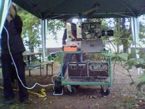 Hoppla, Vorbereitung des Open-Air-Kinos, auch wir walken unsere line: